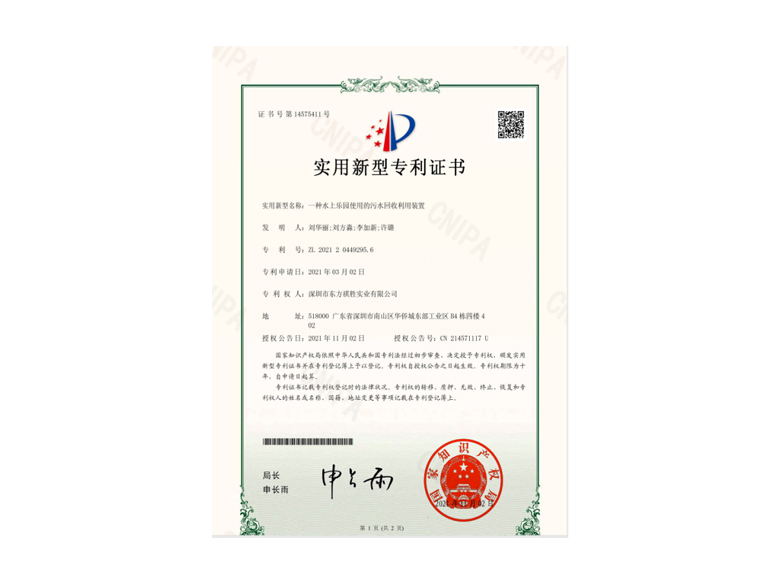 • “用于改善湖水水質的凈化處理系統(tǒng)”等17項實用新型專利