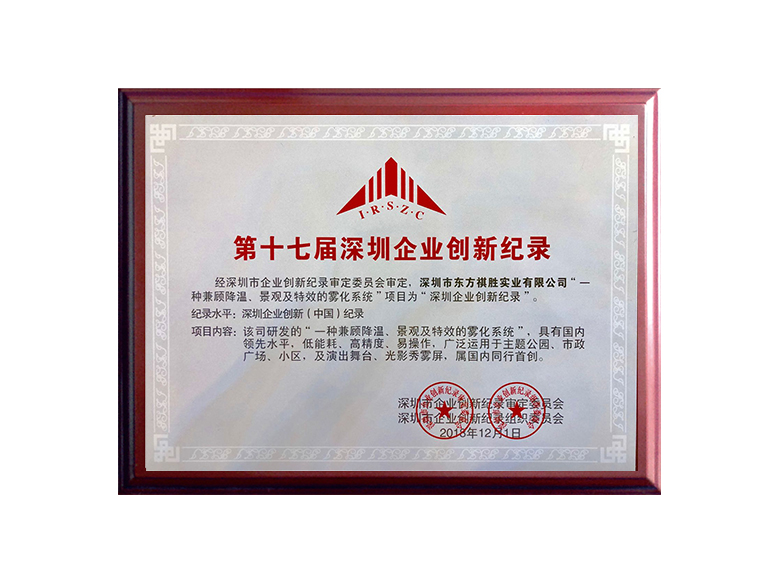 • 第十六屆(2017)深圳企業(yè)創(chuàng)新紀錄