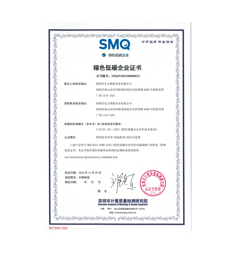 綠色低碳企業(yè)證書