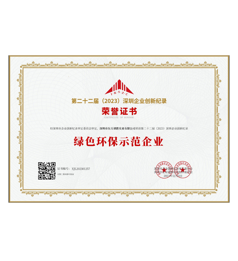 • 第二十二屆(2023)深圳企業(yè)創(chuàng)新紀錄--綠色環(huán)保示范企業(yè)