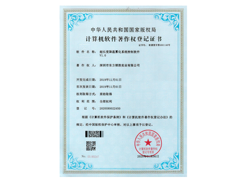 • “超長度降溫霧化系統(tǒng)控制軟件”等14項軟件著作權