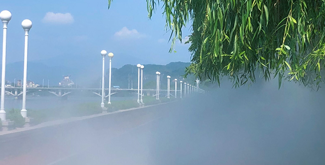 前段時(shí)間,市區(qū)應(yīng)星樓防洪堤一帶正在建設(shè)2.5公里的霧森系統(tǒng),建好之后風(fēng)景很好又很清涼。今天記者從相關(guān)部門了解到,經(jīng)過幾個(gè)月的調(diào)試,這個(gè)項(xiàng)目今天正式通過驗(yàn)收,接下去將對市民開放,同時(shí)這個(gè)人工霧帶也是目前亞洲最長的人工降溫霧帶。